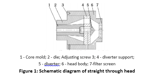هد به طور کلی از بدنه سر، دیورتر، تکیه گاه دیورتر، پیچ تنظیم، قالب هسته، دای لیپ و غیره تشکیل شده است.سر اکستروژن لولهبه طور کلی به نوع مستقیم، نوع زاویه راست، نوع خارج از مرکز، نوع مارپیچ و نوع سبد صفحه تقسیم می شوند. هد مستقیم رایج ترین مورد استفاده است و ساختار آن در شکل 1 نشان داده شده است. بخش فشرده سازی پشتیبان دیورتر، قالب و هسته قسمت دوم سر، یعنی بخش فشرده سازی را تشکیل می دهد. بخش های مستقیم قالب و هسته سومین قسمت سر یعنی قسمت شکل دهنده را تشکیل می دهند.